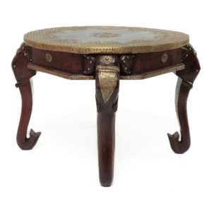 Mesa Indiana de Madeira com Detalhes em Latão – Artesanal e Decorativa