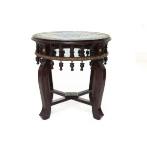 Mesa Indiana de Marchetaria com Tampo Decorado – Arte em Madeira e Cerâmica